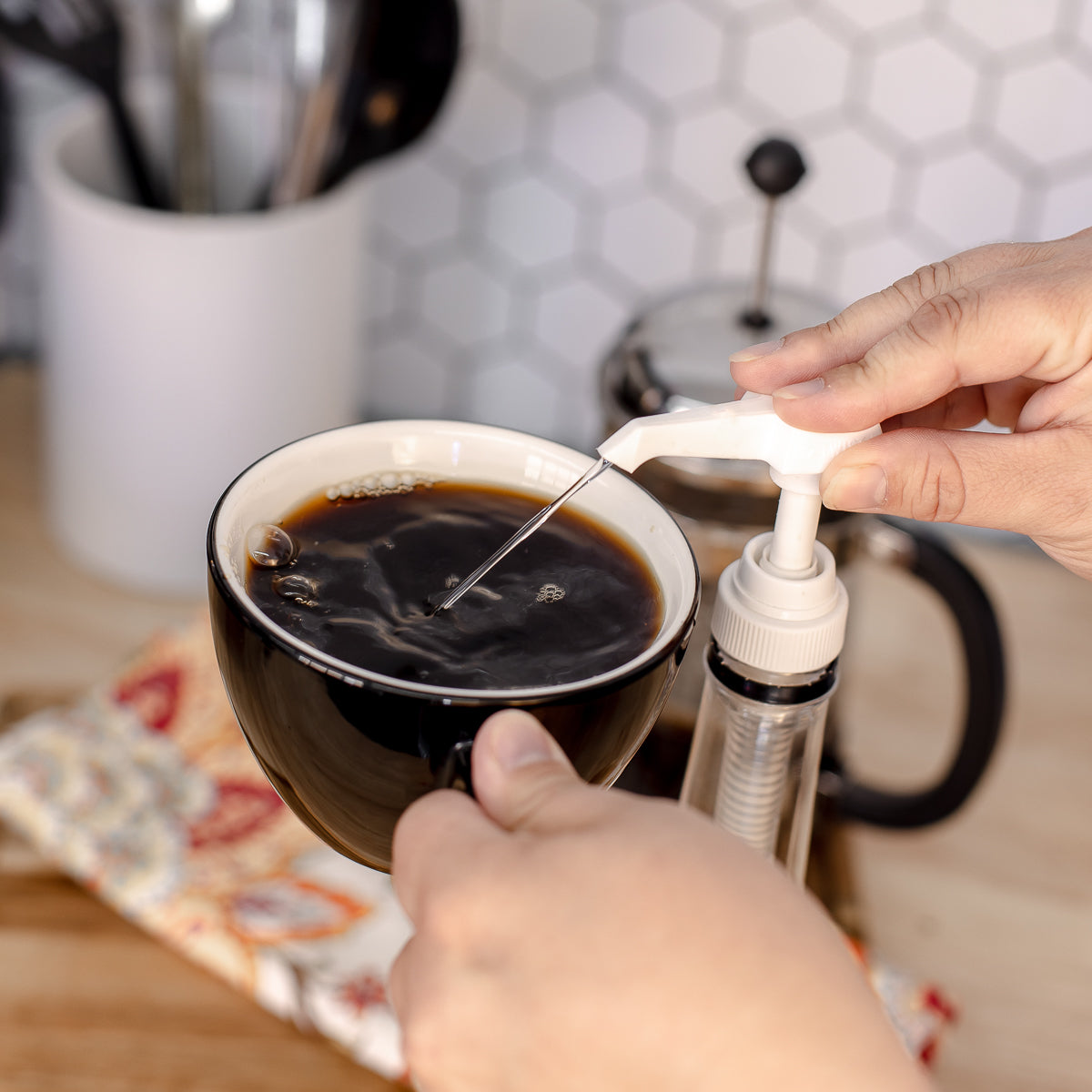 Dispense the perfect amount of ourSignature Syrupfor your coffee drink of choice with one of these pumps! Each pump perfectly fits the bottle our Signature Syrups come in to help you take the guesswork out of how much syrup to add to your at-home latte. We even include suggested pump amounts based on how big of a drink you're making!